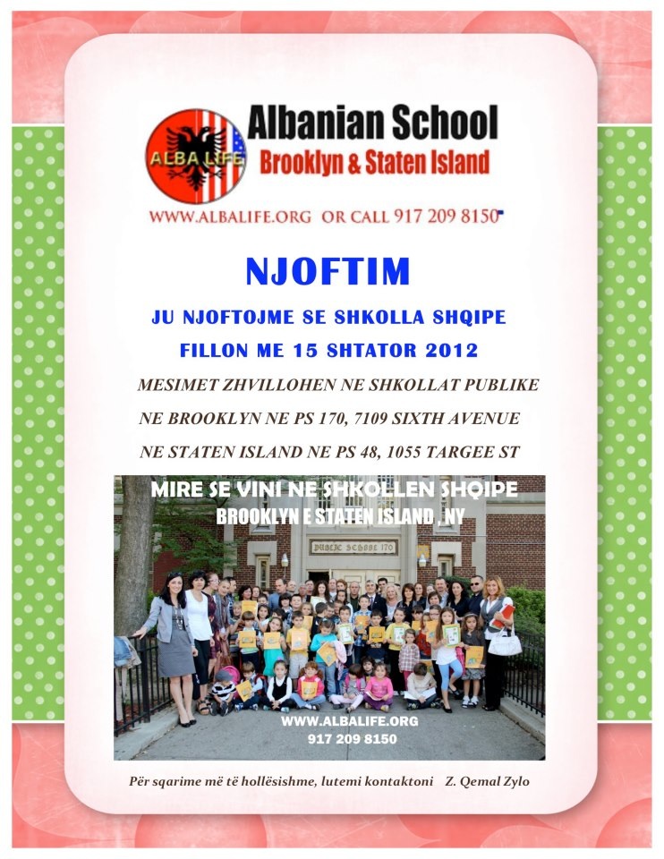 Njoftim i shkolles shqipe “Alba Life”, NY